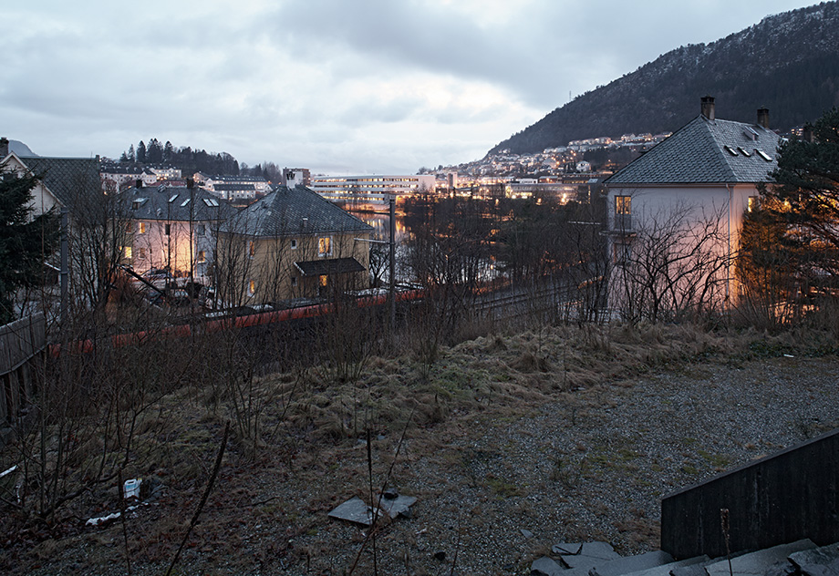 Utsikt mot Solheimsvannet fra en hage i Fabrikkgaten.
