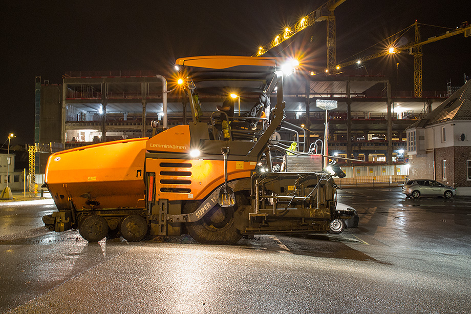 En mobilkran er tatt i bruk for å få betongelementer på plass: