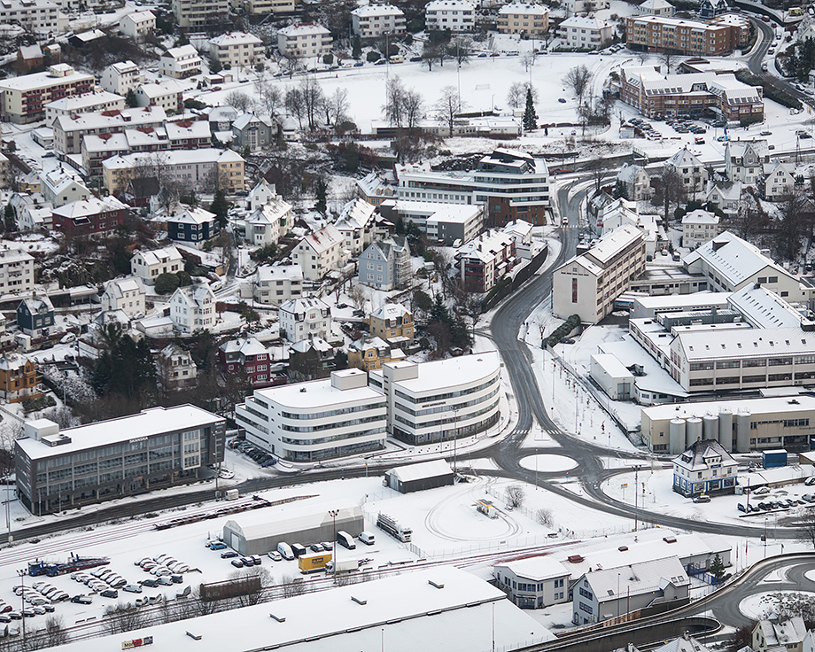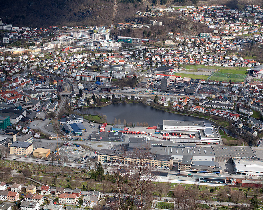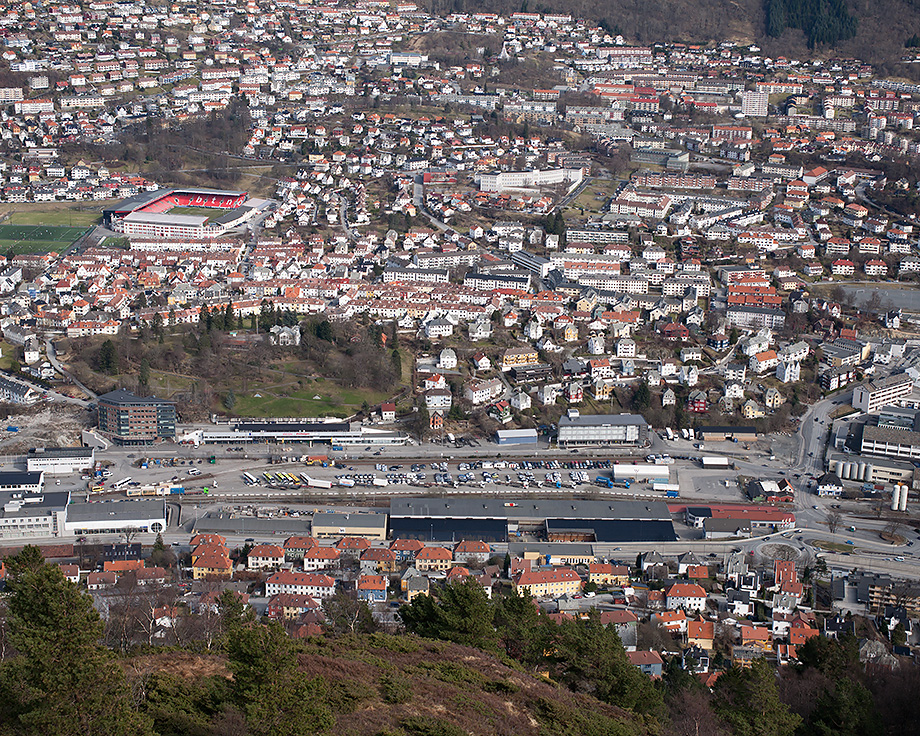Sentrale Mindemyren sett fra Leaparken. Mars 2012. Her er en detalj i bedre oppløsning.