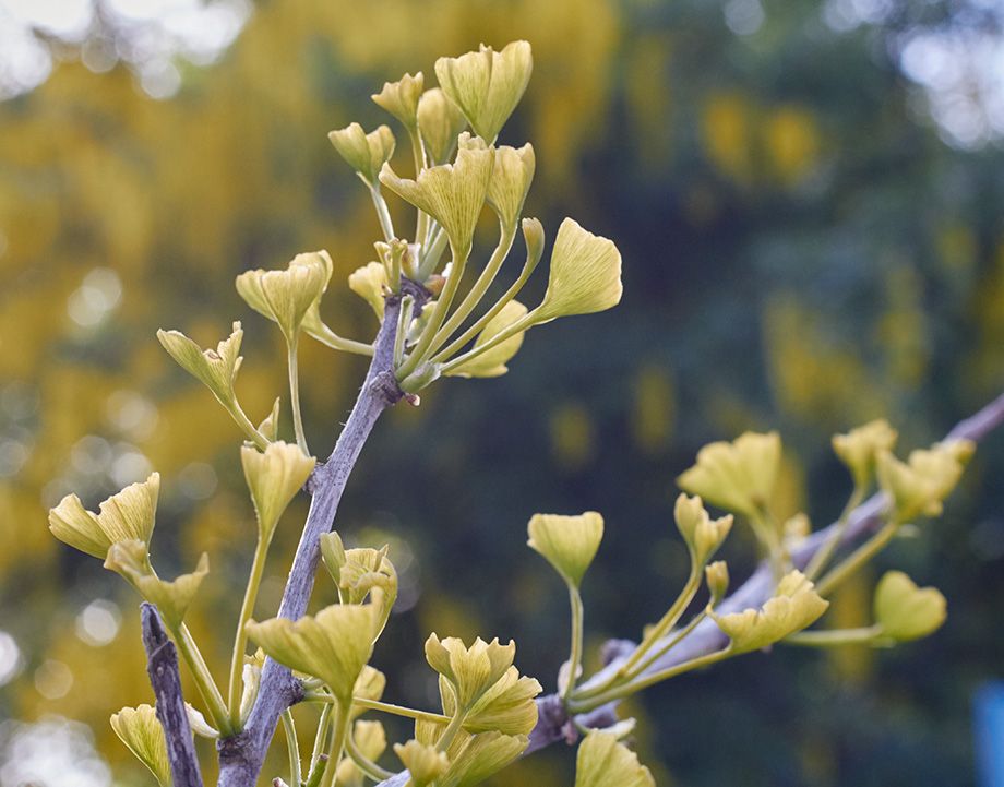 Ginkgotreet på verdens største ladestasjon for elbiler har klart vinteren fint og skyter nå grønne blad.