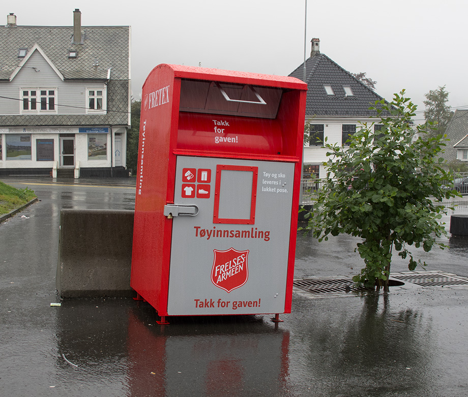 Frelsesarméen har plassert ut innsamlingspunkt for klær på Wergeland, ved REMA.