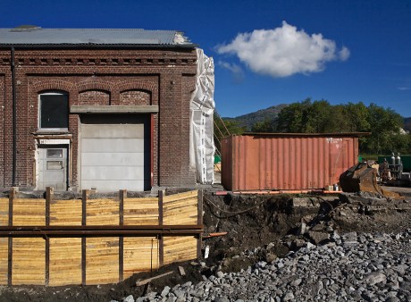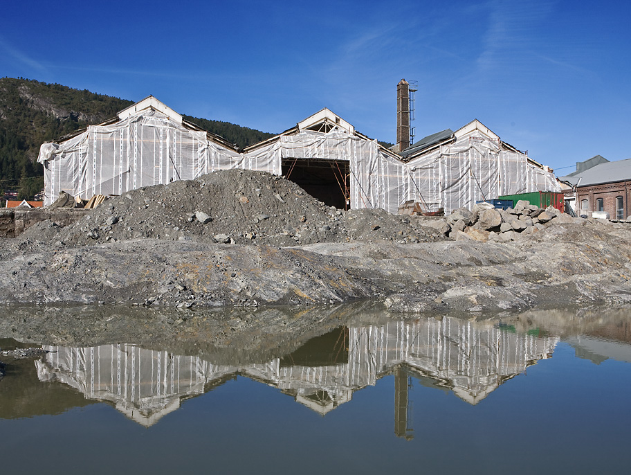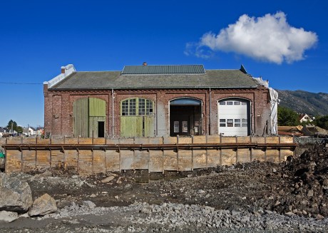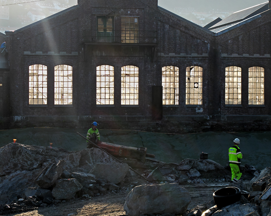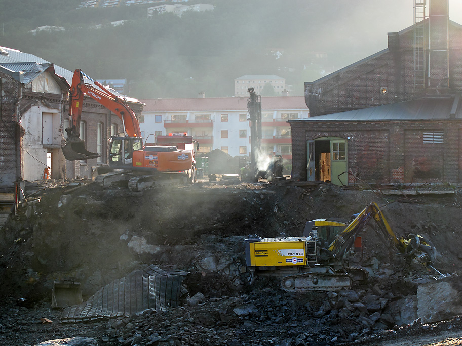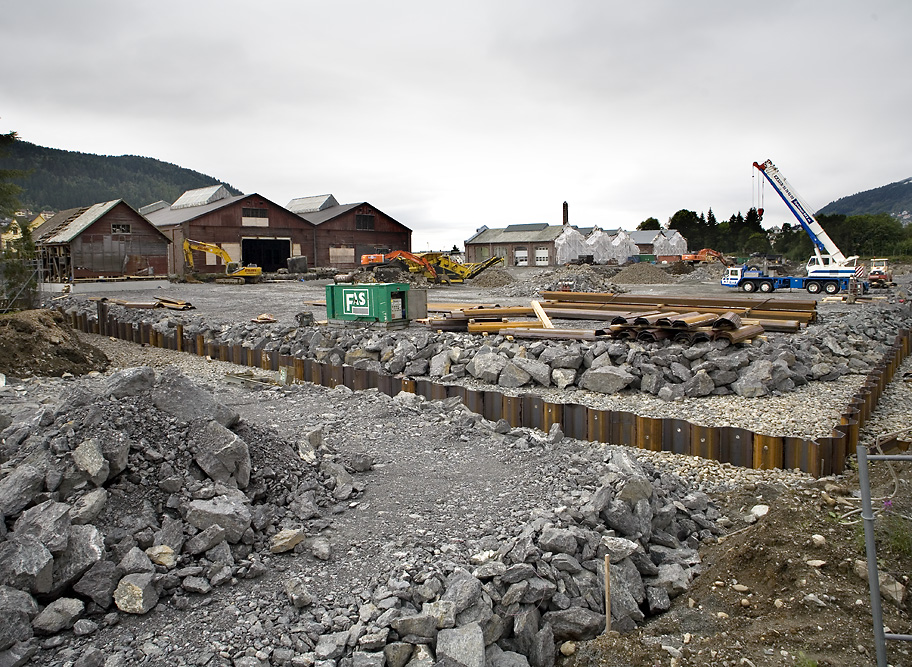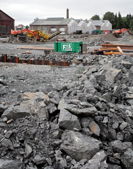 Det er et stort areal som graves ut omkring de gamle verkstedhallene på Kronstad.