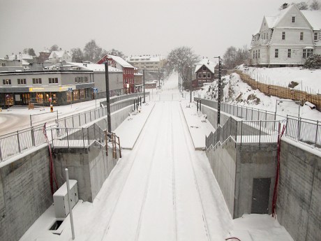 Bybanesporene ved inngangen til Fageråstunnelen på Wergeland.