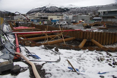 Nå graves, støpes og spuntes det forbi det tidligere meieriområdet og NRK.