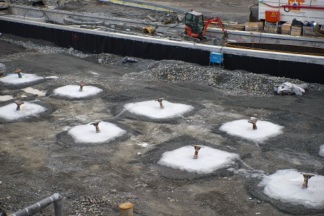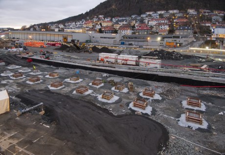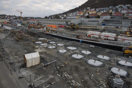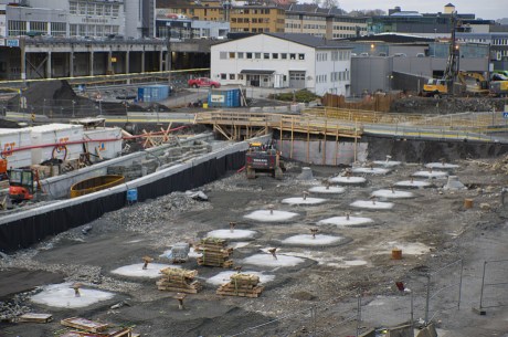 Nå graves, støpes og spuntes det forbi det tidligere meieriområdet og NRK.