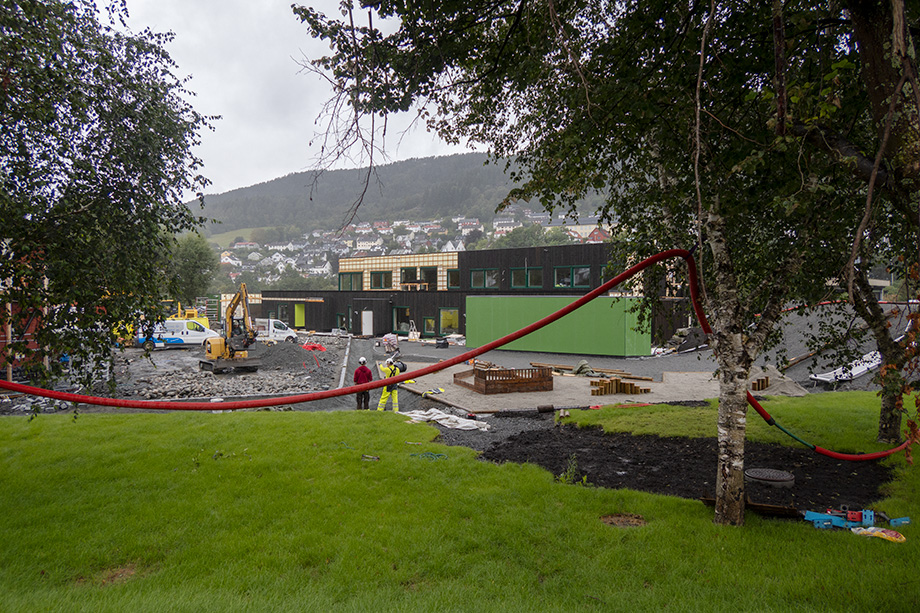 I Fabrikkgaten er anleggsgartneren aktiv i høyden.