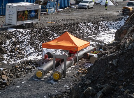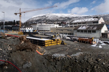 Det legges nye rør for fjernvarme, med betydelig større dimensjoner enn dem som lå her før.