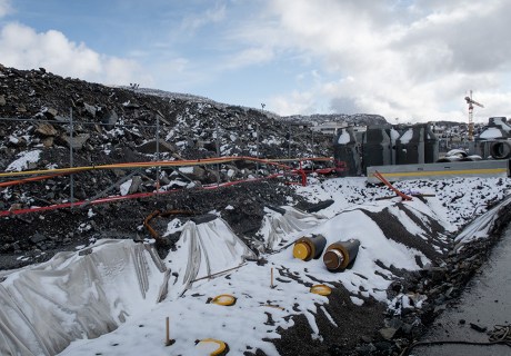 Enkelte steder må det graves dypt, og stein må fylles i myra før fjernvarme og bybanespor kan legges.