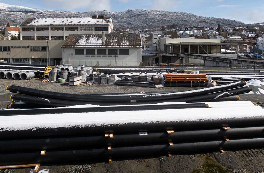 Det legges nye rør for fjernvarme, med betydelig større dimensjoner enn dem som lå her før.