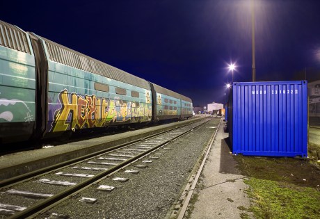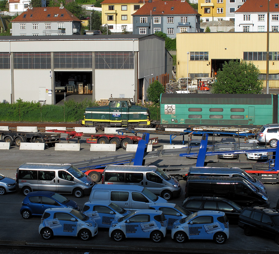 Det står en del utrangerte biler hensatt forskjellige steder på området, men for det meste er det nye biler som er kommet med toget.