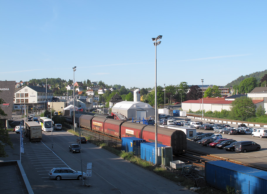 Etter at terminalen på Mindemyren har vært stengt et par år under bygging av Bybanen er godstogene med biltransport nå tilbake.