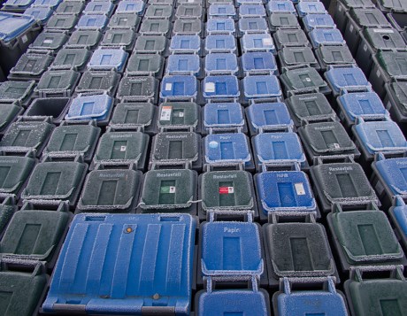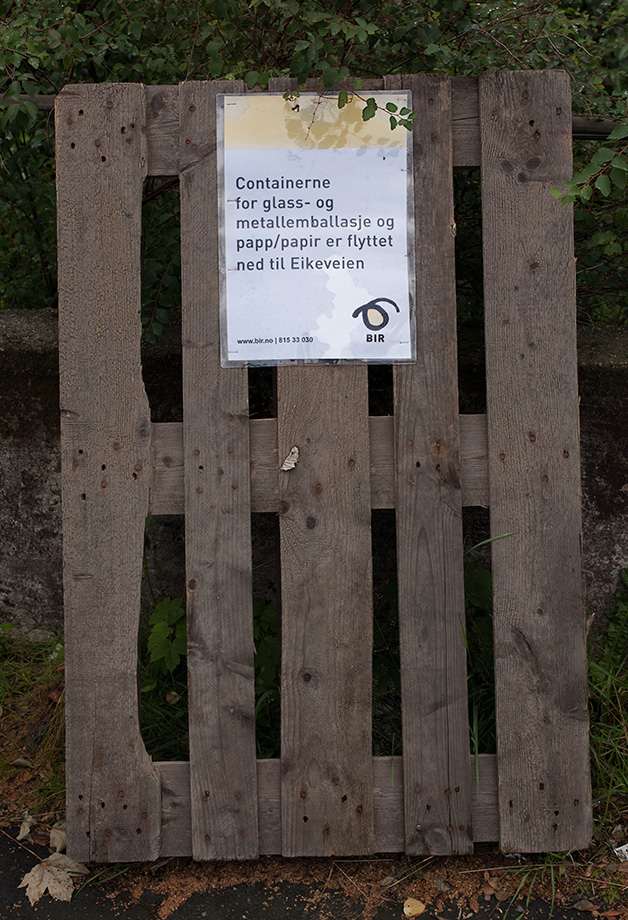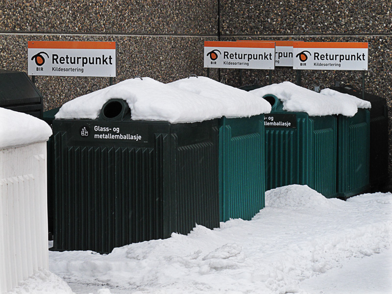 Beholderne for glass og papir er flyttet noen meter fra krysset Svaneviksveien/Falsens vei ned trappen til Ambrosia Tønnesens plass / Trikkesløyfen / Eikeveien. Der står det også et par andre kontainere som er plassert ut i forbindelse med utbyggingen i området.