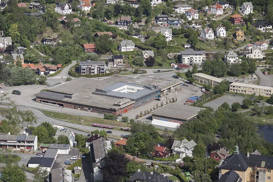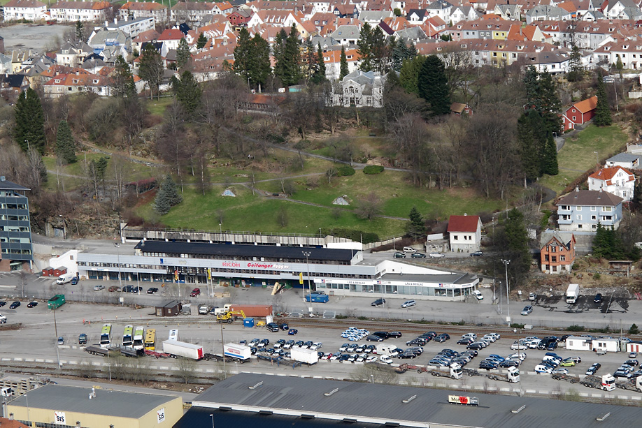 Lenger sør på Mindemyren utmerker BiR seg. Flere bygninger i området har grønne tak, men det kan være en følge av naturens gang.