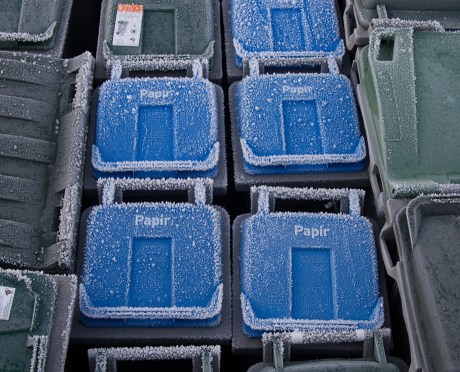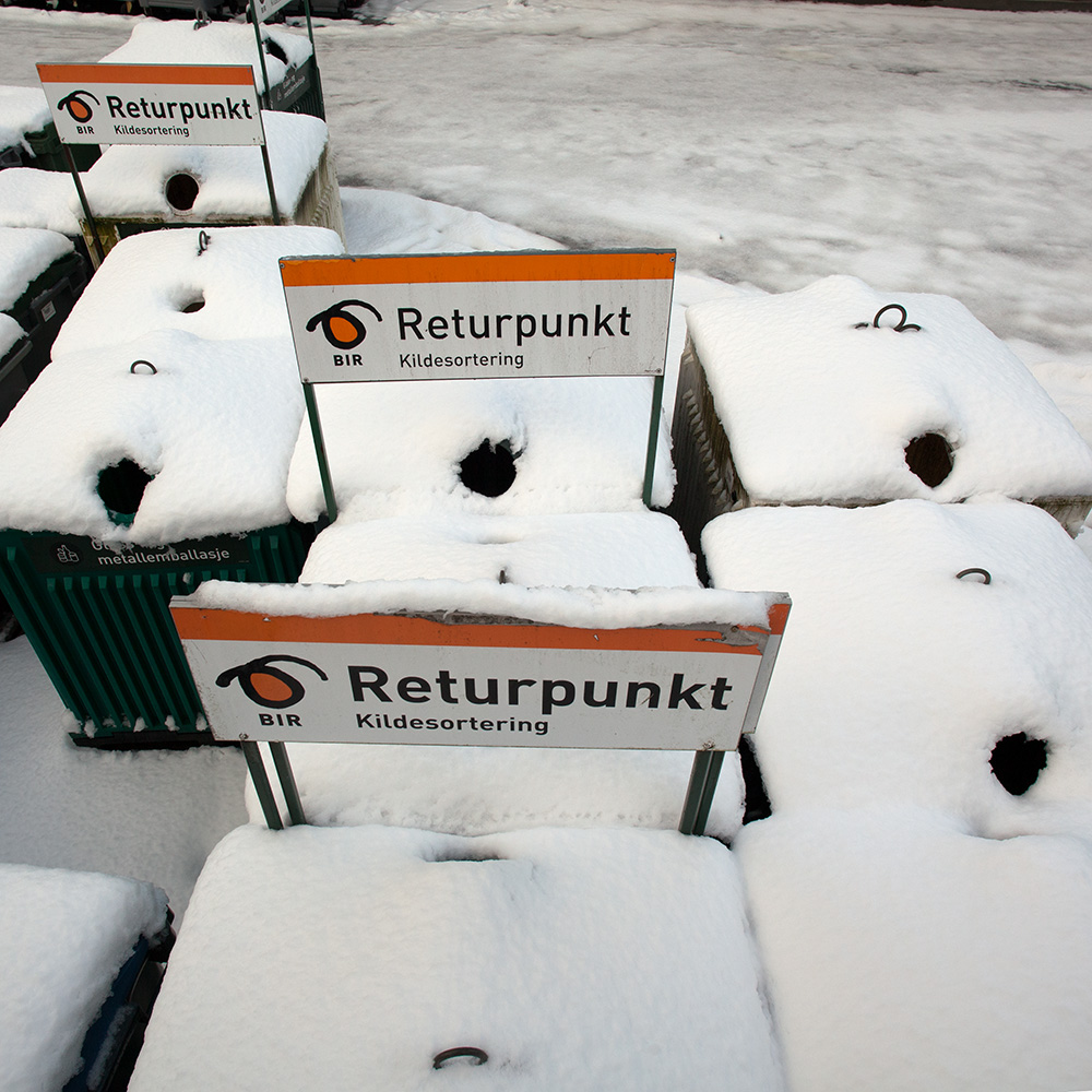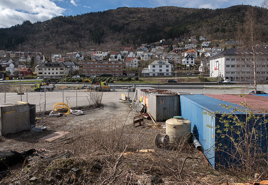De tre siste bildene viser bosshåndtering i Inger Bang Lunds veg. En komprimator står under nedkastene i en heis under bakken. Bir Transport bytter komprimatoren når den er full. Det finnes visstnok to andre slike anlegg i Bergen.
