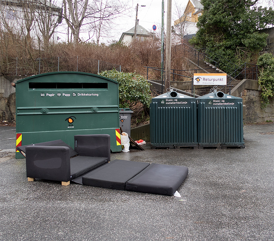 Beholderne for glass og papir er flyttet noen meter fra krysset Svaneviksveien/Falsens vei ned trappen til Ambrosia Tønnesens plass / Trikkesløyfen / Eikeveien. Der står det også et par andre kontainere som er plassert ut i forbindelse med utbyggingen i området.