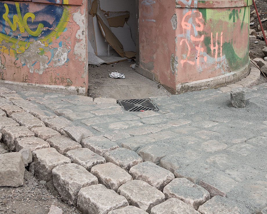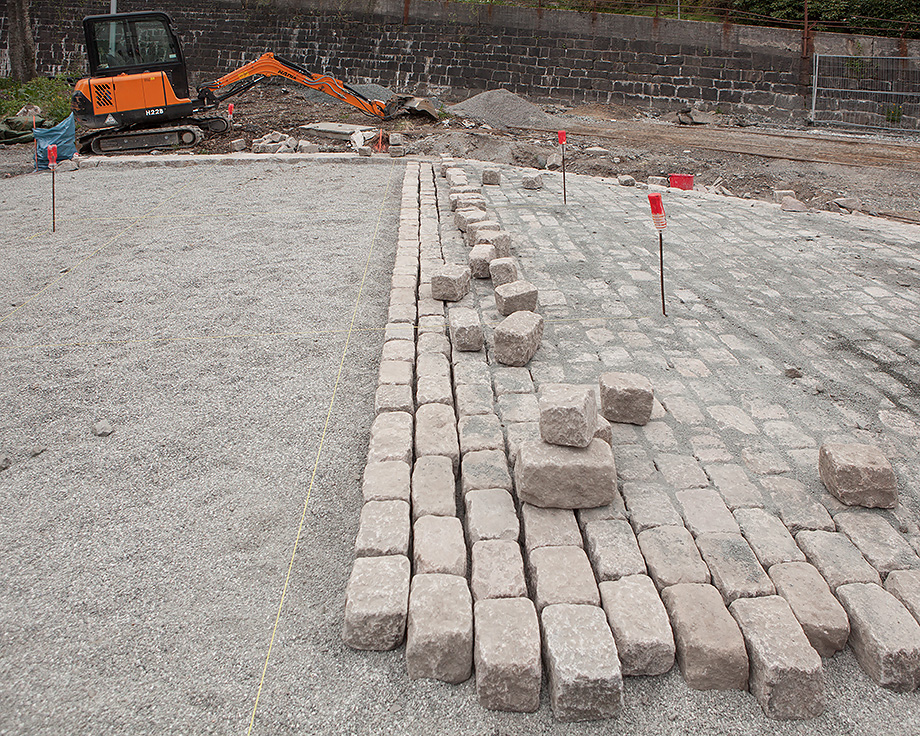 Legging av brostein har pågått noen uker som del av arbeidet med å gjøre ferdig området.