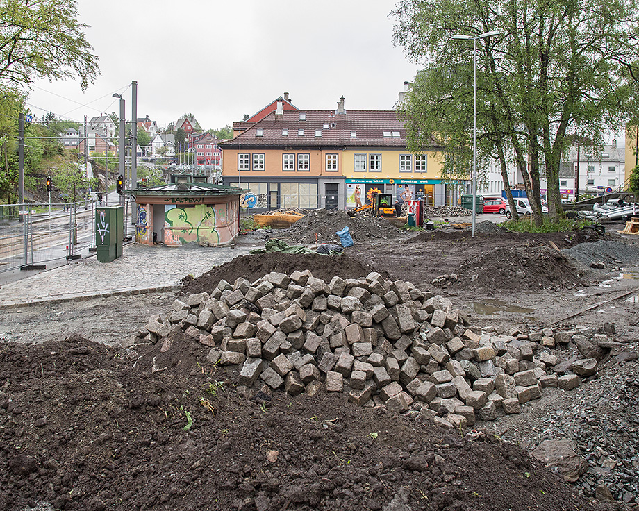 Posted by alfedgar in Mindemyren.Tags: brostein, grøntanlegg, Minde Allé, rundkjøring, veiarbeid