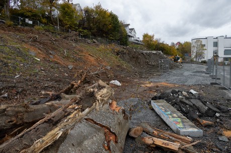 Trærne er hugget og utgraving av den store tomten i Eikevegen er startet. Dette blir en del av utbyggingen «Minde Allmenning». Planbeskrivelse her.