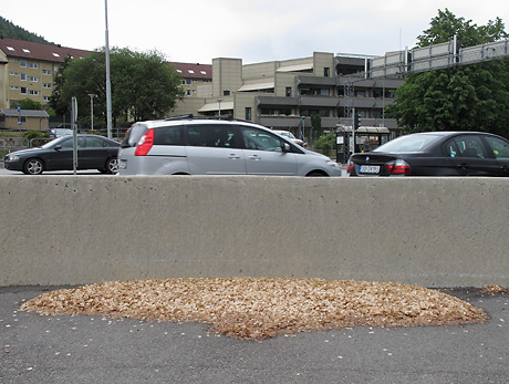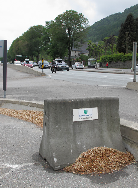 Ved Kristianborg er det en ganske stor midtrabatt mellom sørgående og nordgående løp på Fjøsangerveien. I dag er første gang jeg har vært her. I grunnen ikke noe blivende sted.