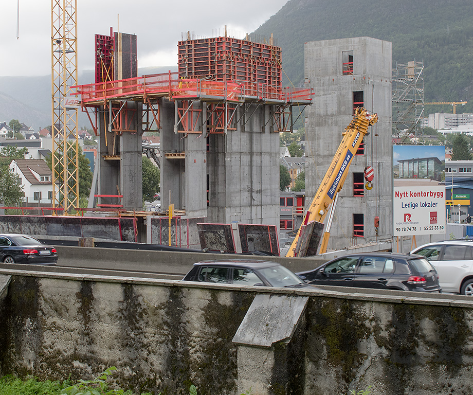 På tomten etter Gass-Service i Kanalveien 11 begynner nybygget å reise seg. Ledige lokaler annonseres og kranene svinger seg.