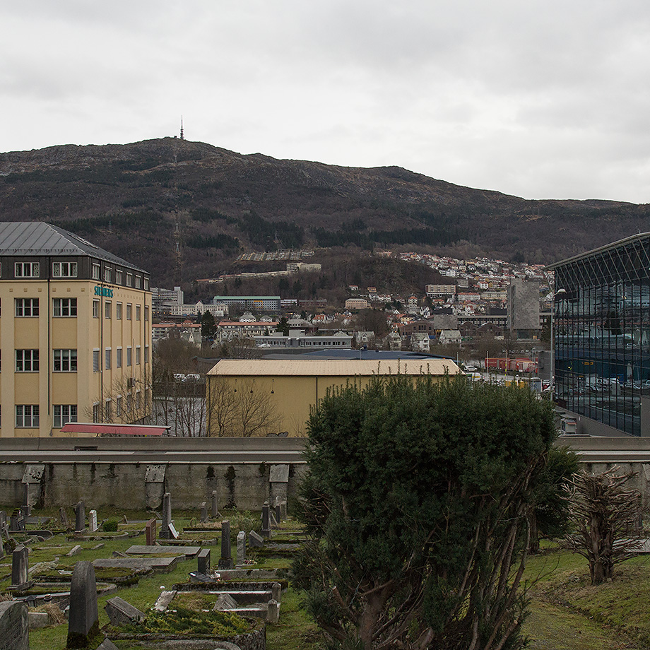 Nybygget i Kanalveien 11 speiler Solheim kirkegård som ligger på motsatt side av Fjøsangerveien.
