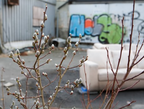 På baksiden av disse bygningene som vender ut mot Fabrikkgaten gror det godt.