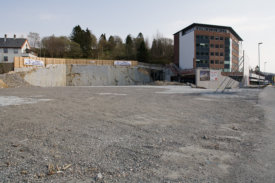 Det ser ut til å drøye med byggetrinn 2 i Kanalveien 52. Nå er tomten planert, så her blir det nok parkeringsplasser — inntil videre.