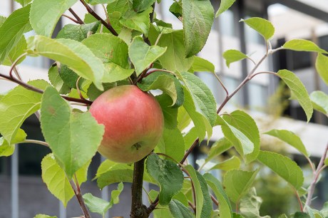 Her vokser blant annet både rabrabra og epletre. Treet er «Kronprins» og «Discovery», «Rød Aroma» og «Transparente Blanche» ser ut til å være podet på denne. Det blir fire.