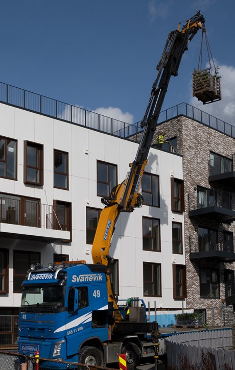 I Fabrikkgaten er anleggsgartneren aktiv i høyden.