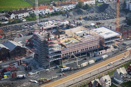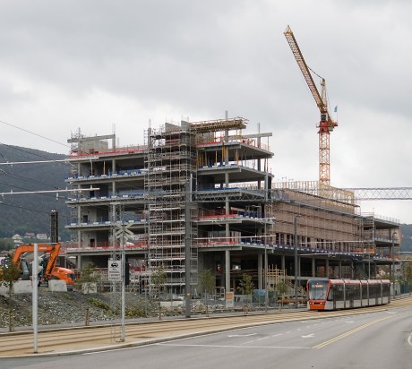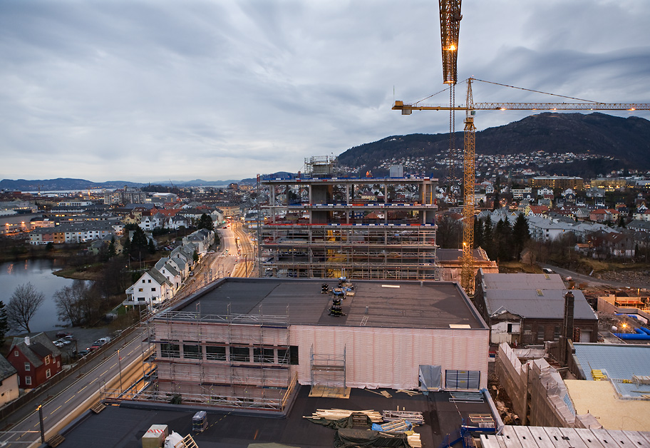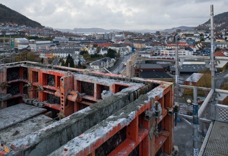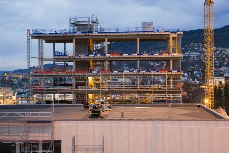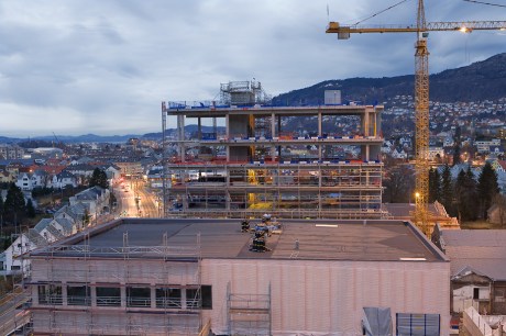 Ennå mangler et par etasjer på høyskolen. 9 etasjer og 29 meter skal det bli.