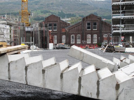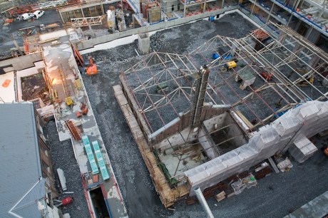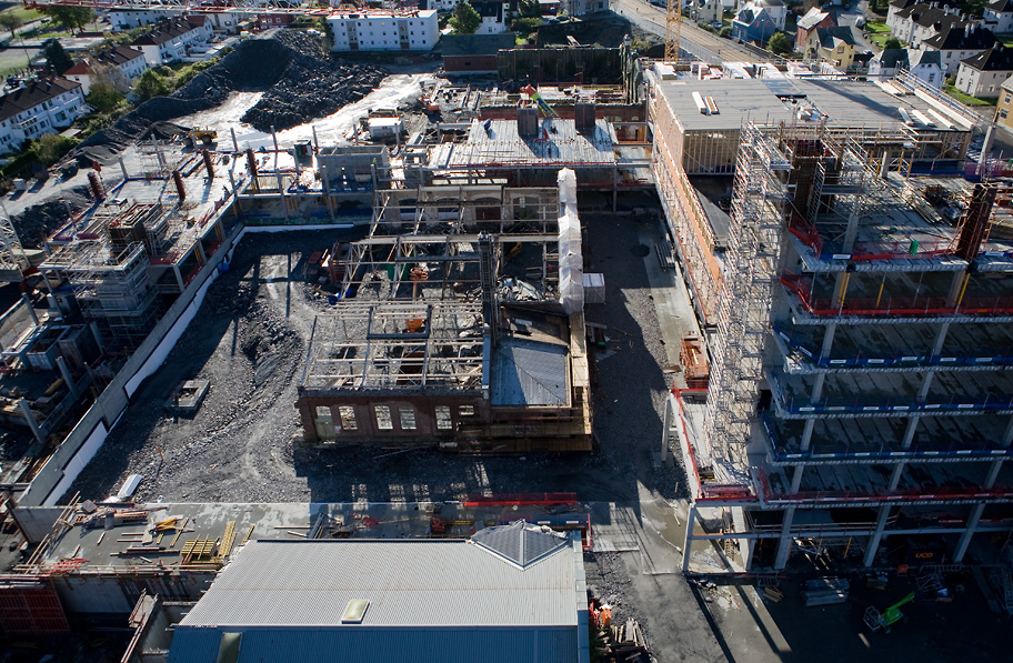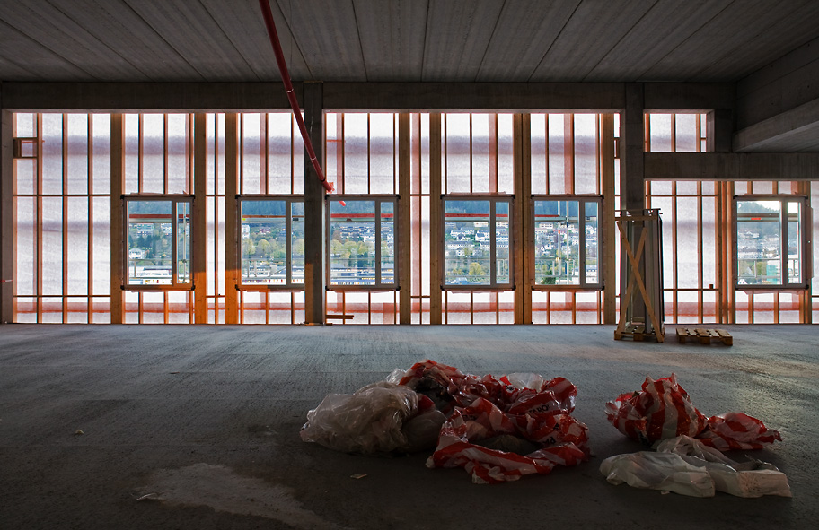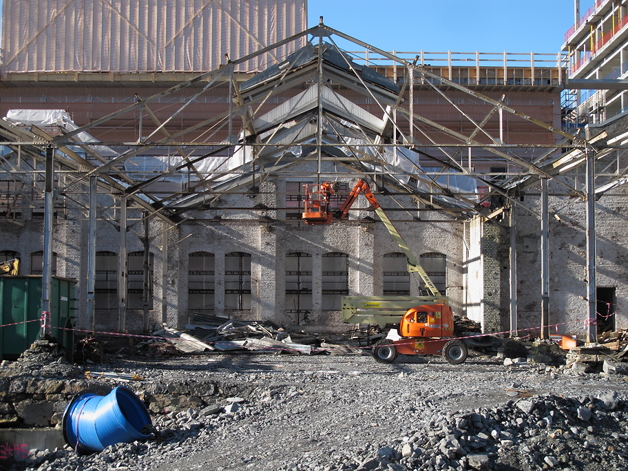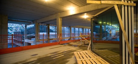 … og tak skiftes. Her ser vi inn i det som skal bli biblioteket i den nye høyskolen. Dette i følge plantegning fra Statsbygg (fant den i bloggen til Jon Hoem).