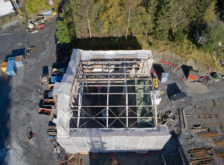 Operasjonen sett nedenfra. De to øverste bildene er tatt fra kranen i bakgrunnen.