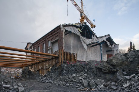 Det er blant annet tatt i bruk kraftige stålrør for å støtte opp de gamle teglbygningene mens det graves, sprenges og bygges omkring dem.