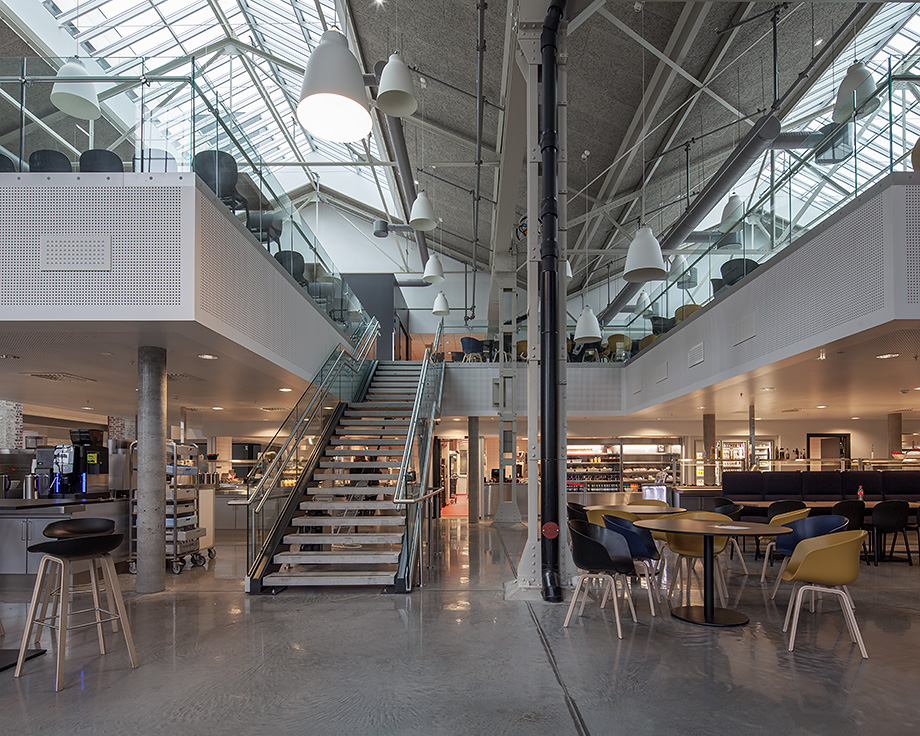 En del av kantinen ligger i et av de gamle, restaurerte byggene og en del ligger i en nybygd fløy.