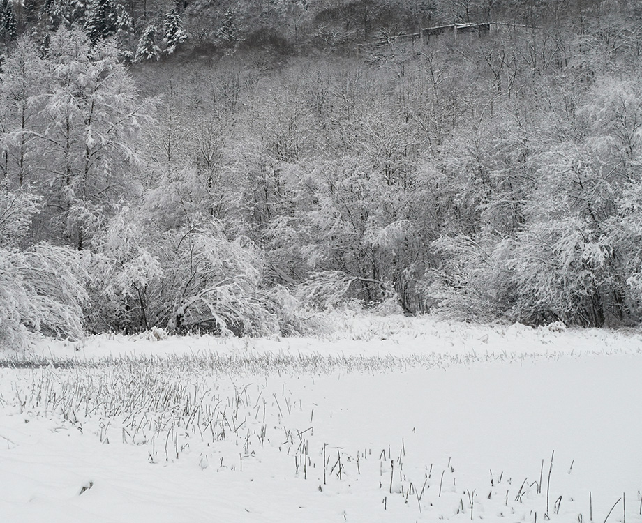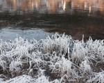 Det er mye rim på isen men under er det finfin stålis. Bare ved innløpet er det åpent vann, til glede for endene, som tidligere år.