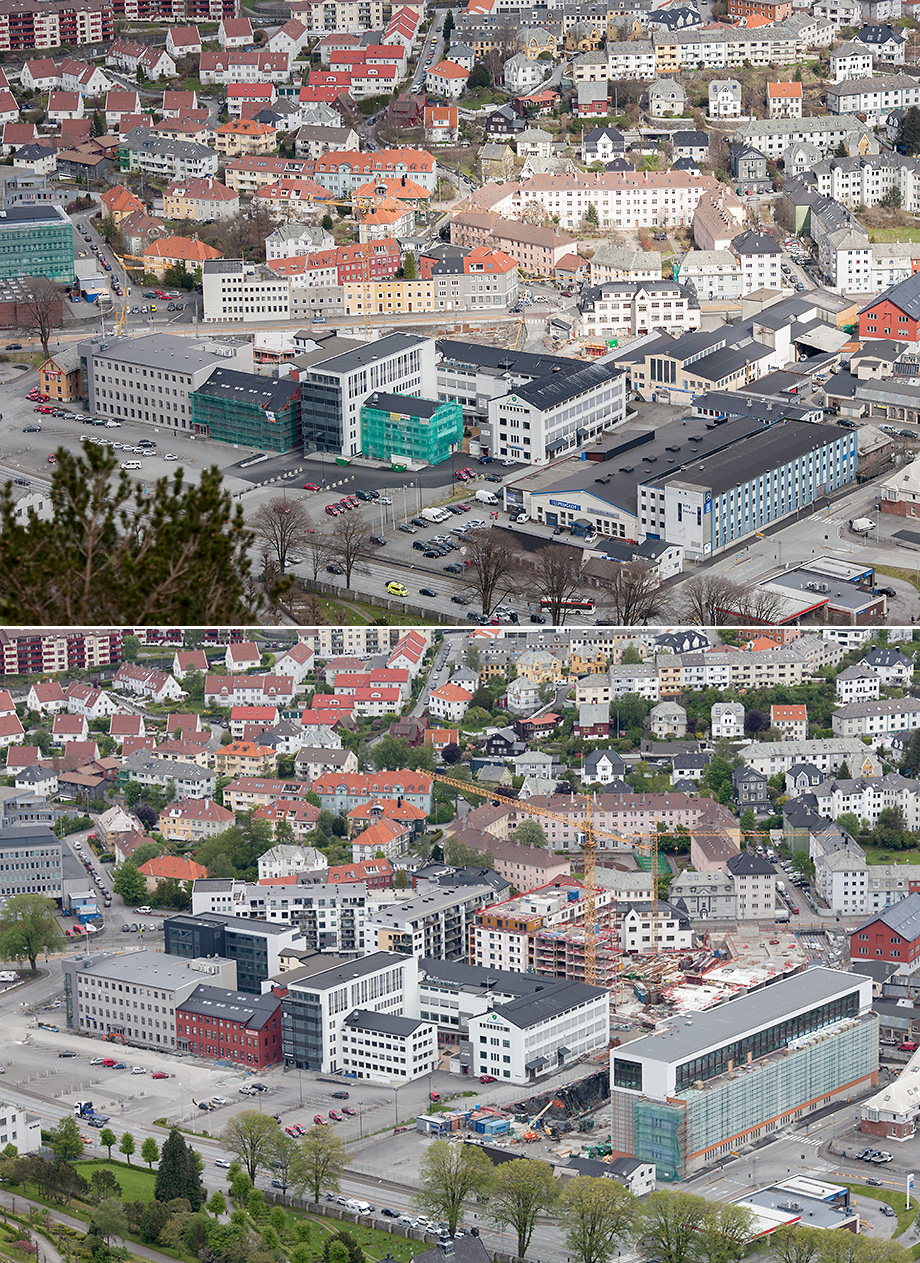Til slutt et oversiktsbilde fra hhv. april 2012 og juni 2014.