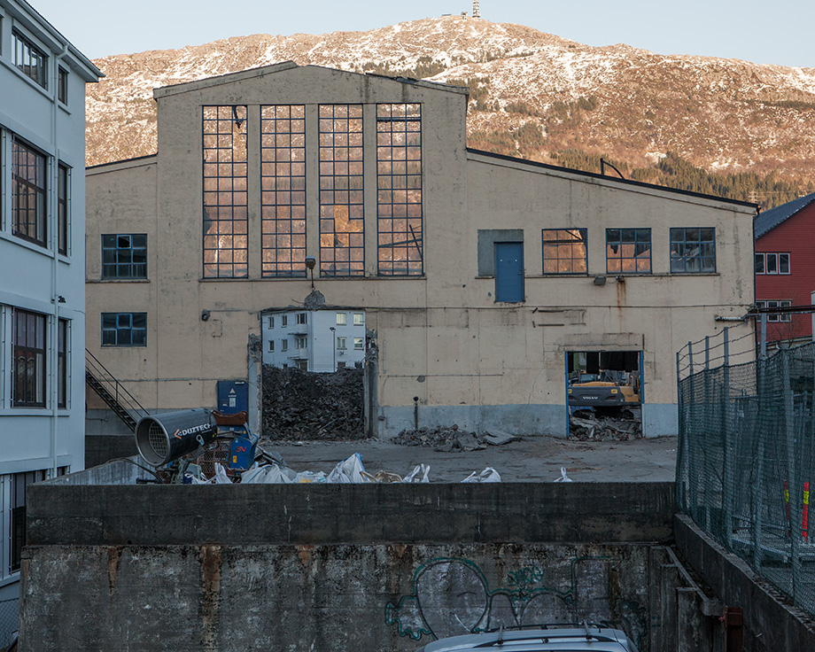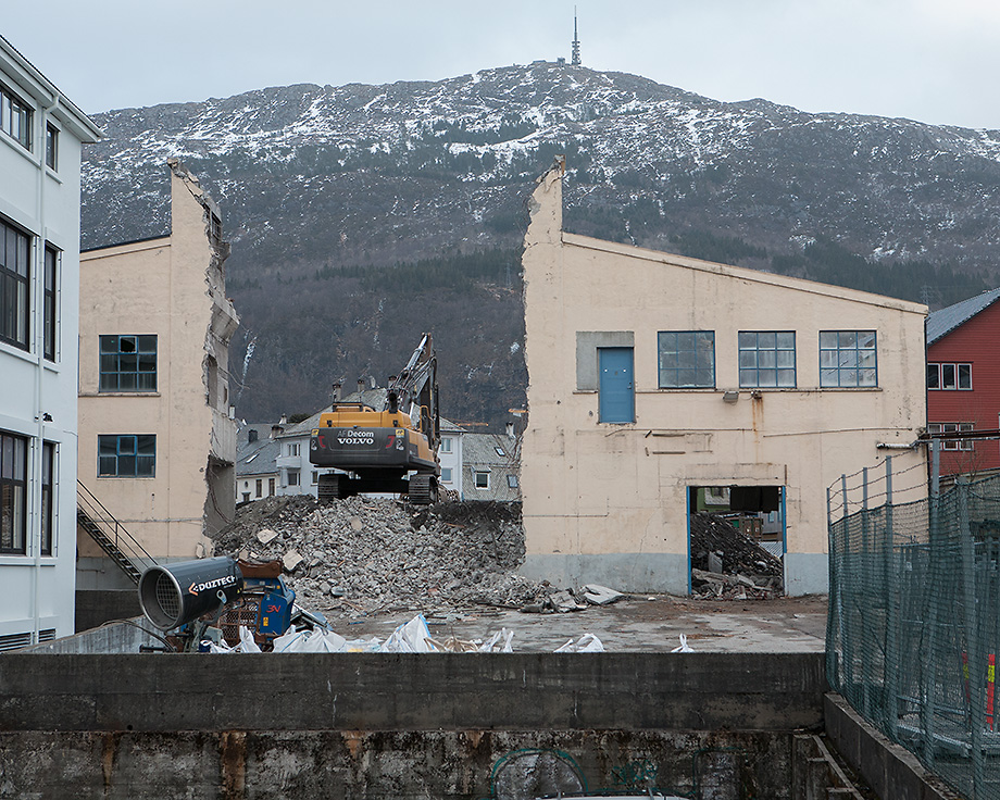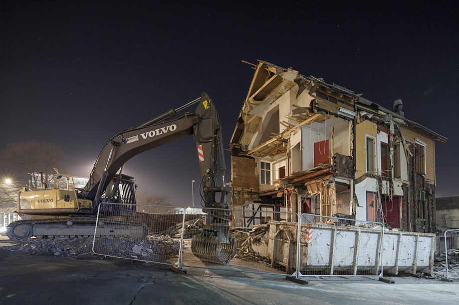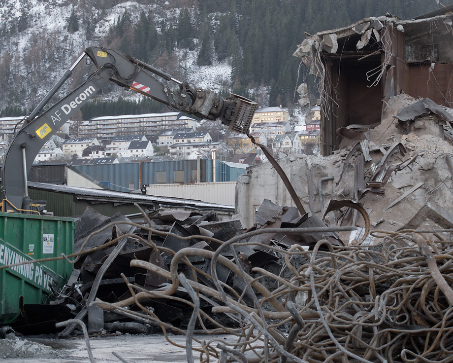 Bilder fra rivingsarbeid. Fabrikkgaten/Kronstadparken.