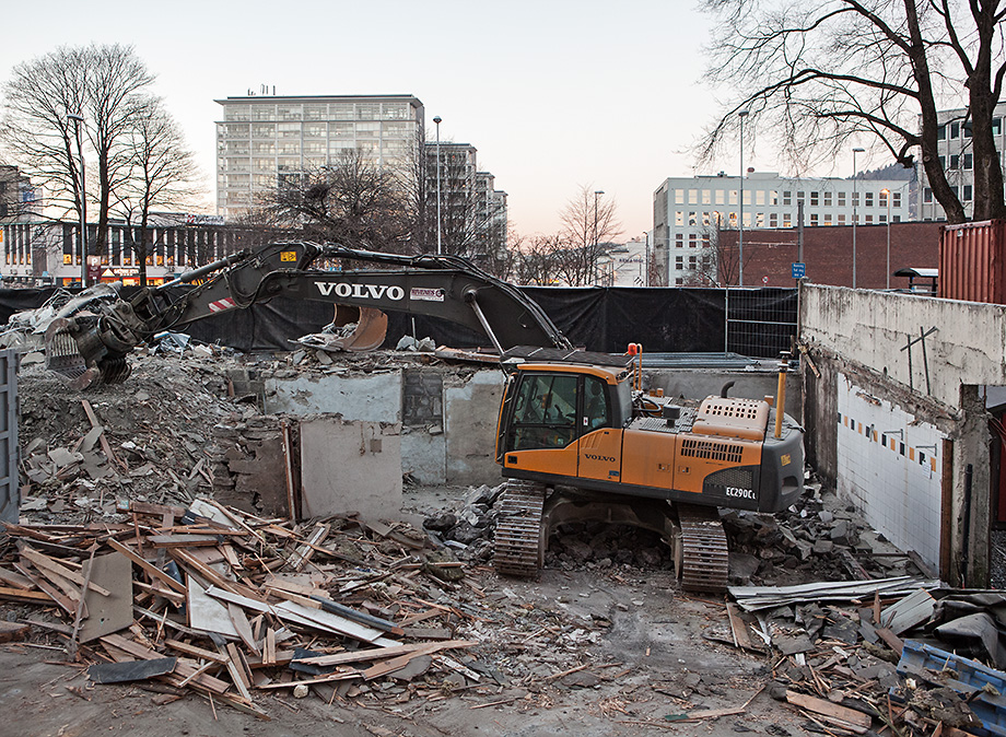 - Februar 2013. Riving av Bjørnsons gate 13-15 pågår.