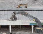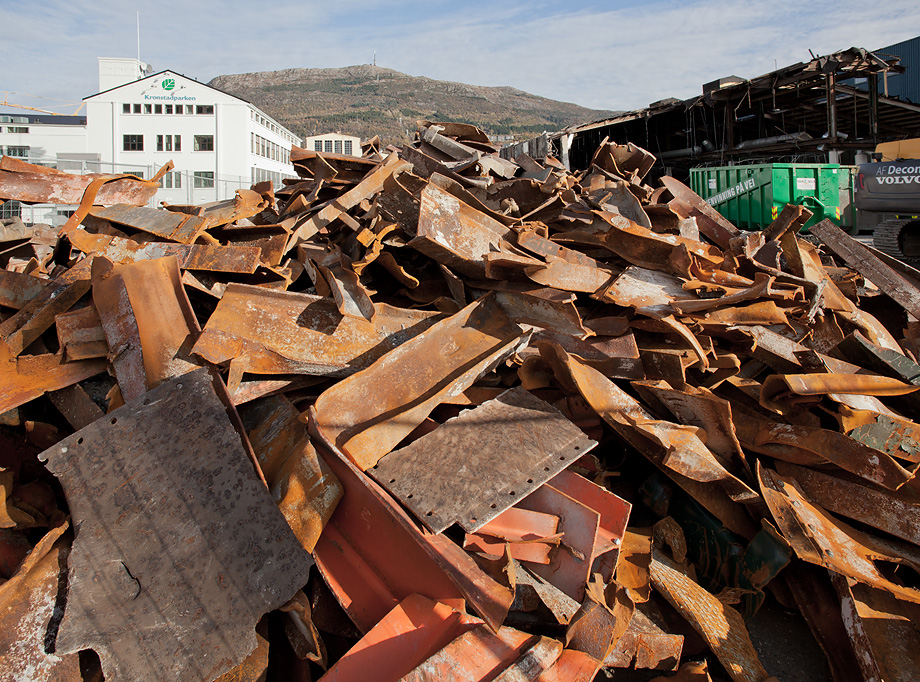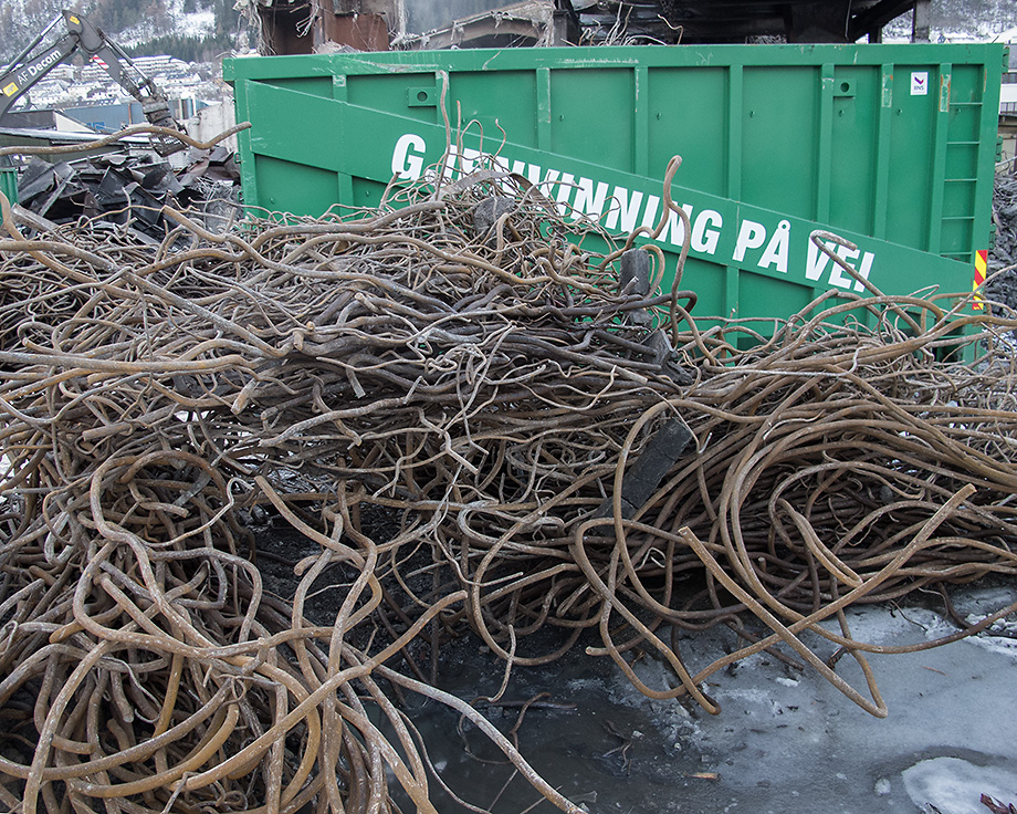 Maskinene svinger seg og plukker ut store mengder jern fra rivningstomten i Kronstadparken.