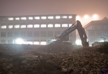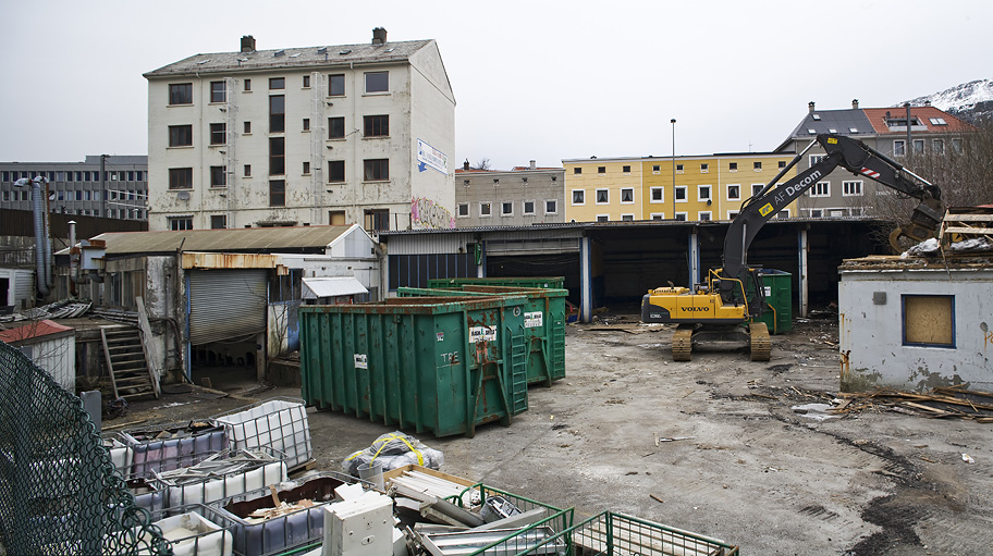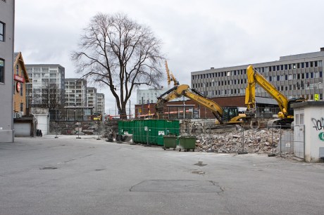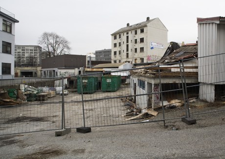 Stort sett bare transformatorkiosken som står igjen. Her skal det bli nye OBOS-boliger.