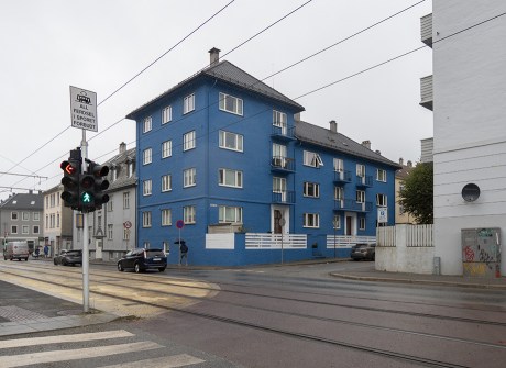 Det blå huset på hjørnet av Bjørnsons- og Sivles gate.