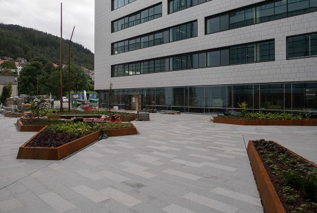 Den nye gatestumpen er en del av Fabrikkgaten og det er fri sikt helt ned til Årstad videregående skole.