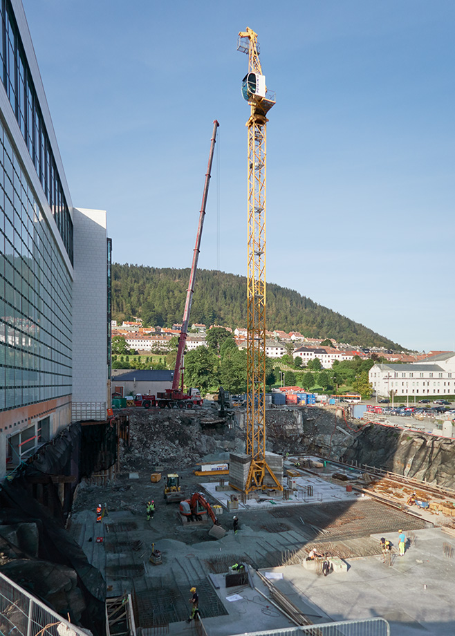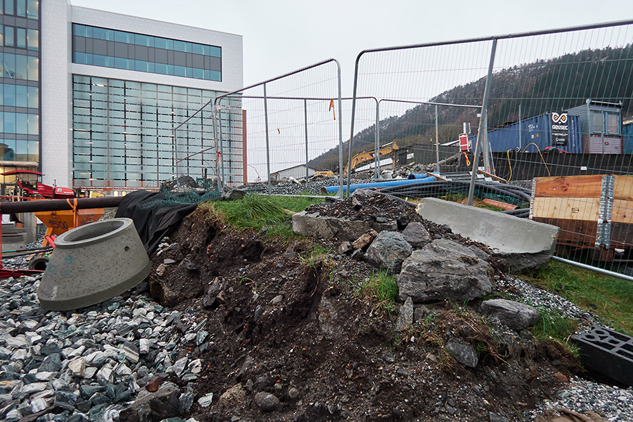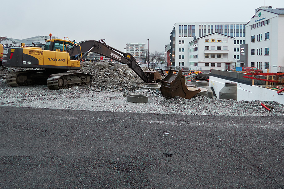 Det arbeides i bunnen av hullet der det skal reises nytt kotorbygg i Kronstadparken.