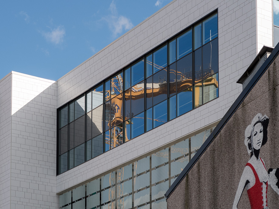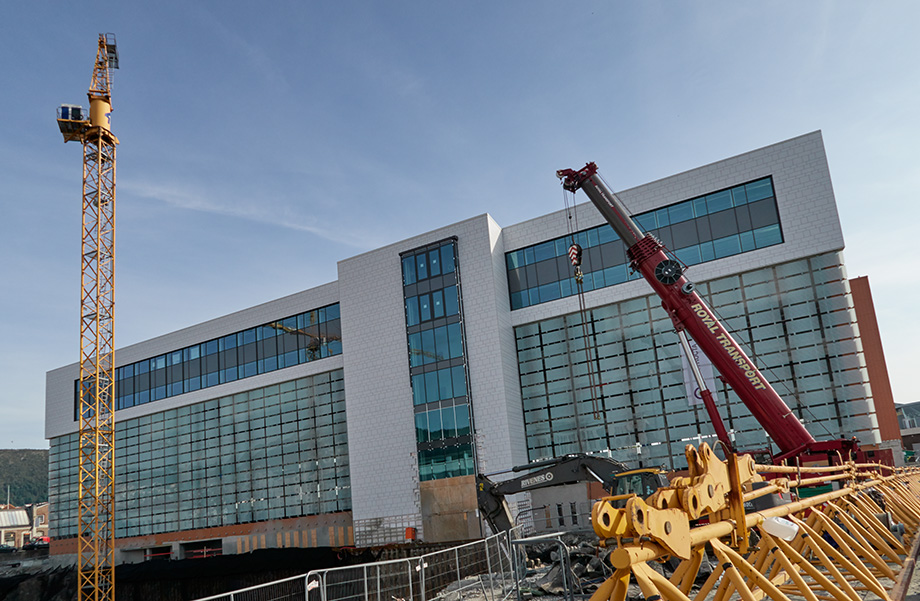 Fasaden mot nord på bygget mot Fabrikkgaten er snart ferdig kledd.