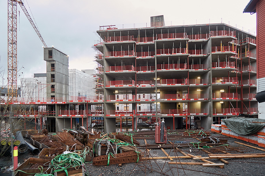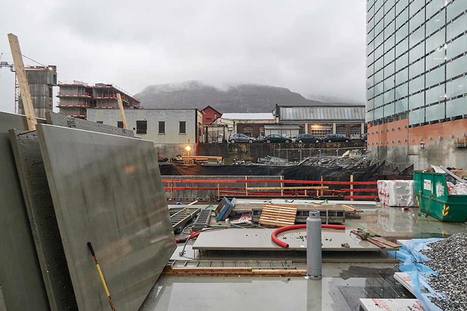 I hullet på baksiden av Fabrikkgaten 6 reiser det seg nå et nytt bygg.