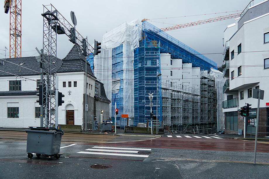 Boligblokkene reiser seg omkring tidligere Garage-kompaniets bygning i Bjørnsonsgate 11.