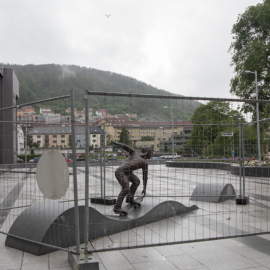 Rullebrettgutten på Kronstadtorget er bltt inngjerdet.