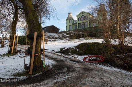 I vinter er det lagt brostein ved grendehuset i Solhaug park, bedre kjent som Leaparken.