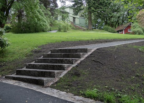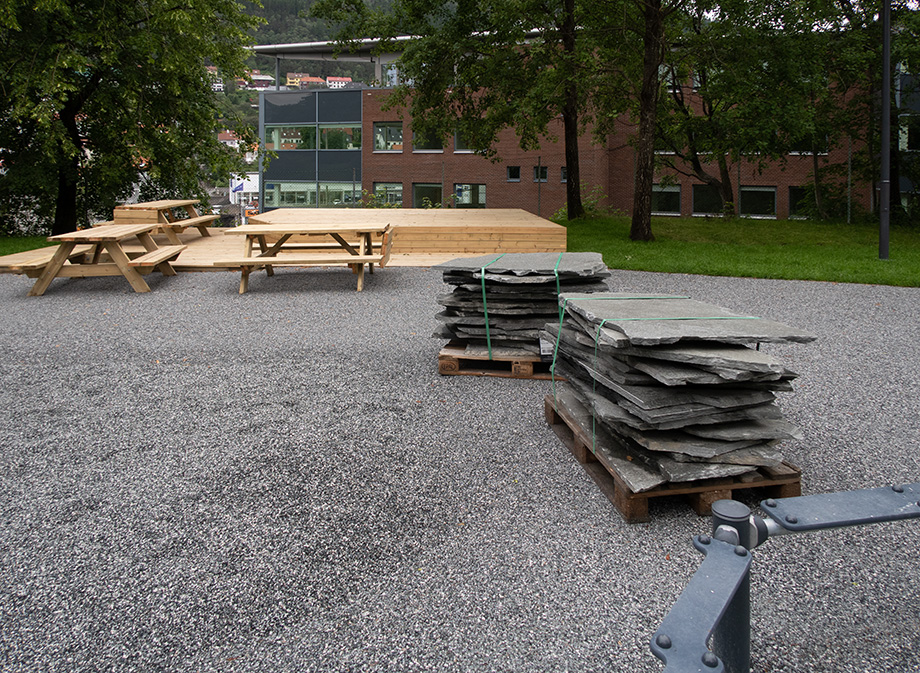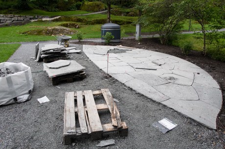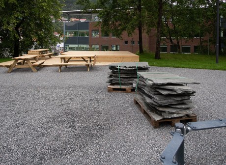 Noen detaljer gjenstår. Blant annet legges det Oppdalskifer ved scenen nederst i parken.