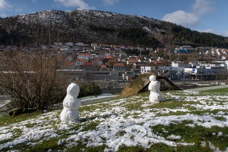 Vårtegn i Leaparken. Og tunet mellom småhusene blir oppgradert.